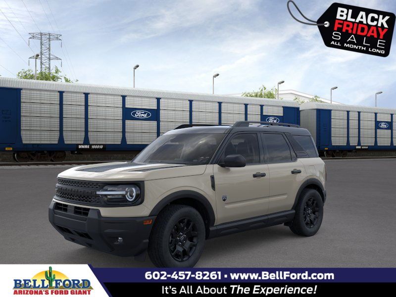 Black Appearance Package (Carbon Black Grille w/Black BRONCO Lettering, Cargo Mat, Front & Rear Floor Liners w/o Carpet Mats, Front Driver/Passenger Seat Back Map Pockets, Liftgate w/Black BRONCO SPORT Lettering, Painted Shadow Black Roof, Premium Trimmed Htd Fr Sport Contour Bucket Seats, and Wheels: 17″ Matte Black-Painted Aluminum), Convenience Package (Heated 8-Way Power Driver’s Seat, LED Fog Lamps, Premium Wrapped Steering Wheel, and Universal Garage Door Opener (UGDO)), Equipment Group 200A, 4-Wheel Disc Brakes, 6 Speakers, ABS brakes, Air Conditioning, Alloy wheels, AM/FM radio: SiriusXM, AM/FM Stereo, Auto High-beam Headlights, Automatic temperature control, Brake assist, Cloth w/Easy-to-Clean Front Bucket Seats, Compass, Delay-off headlights, Driver door bin, Driver vanity mirror, Dual front impact airbags, Dual front side impact airbags, Electronic Stability Control, Emergency communication system: SYNC® 4 911 Assist, Four wheel independent suspension, Front anti-roll bar, Front Bucket Seats, Front Center Armrest, Front reading lights, Fully automatic headlights, Heated door mirrors, Illuminated entry, Knee airbag, Low tire pressure warning, Occupant sensing airbag, Outside temperature display, Overhead airbag, Overhead console, Panic alarm, Passenger door bin, Passenger vanity mirror, Power door mirrors, Power steering, Power windows, Radio data system, Rear anti-roll bar, Rear Parking Sensors, Rear reading lights, Rear seat center armrest, Rear window defroster, Rear window wiper, Remote keyless entry, Security system, SiriusXM, Speed control, Speed-sensing steering, Speed-Sensitive Wipers, Split folding rear seat, Steering wheel mounted audio controls, SYNC® 4 w/Enhanced Voice Recognition, Tachometer, Telescoping steering wheel, Tilt steering wheel, Traction control, Trip computer, Variably intermittent wipers, and Wheels: 17″ Carbonized Gray-Painted Aluminum. Price includes: $1000 – Bonus Customer Cash. Exp. 01/05/2026 $500 – Retail Bonus Cash. Exp. 01/05/2026